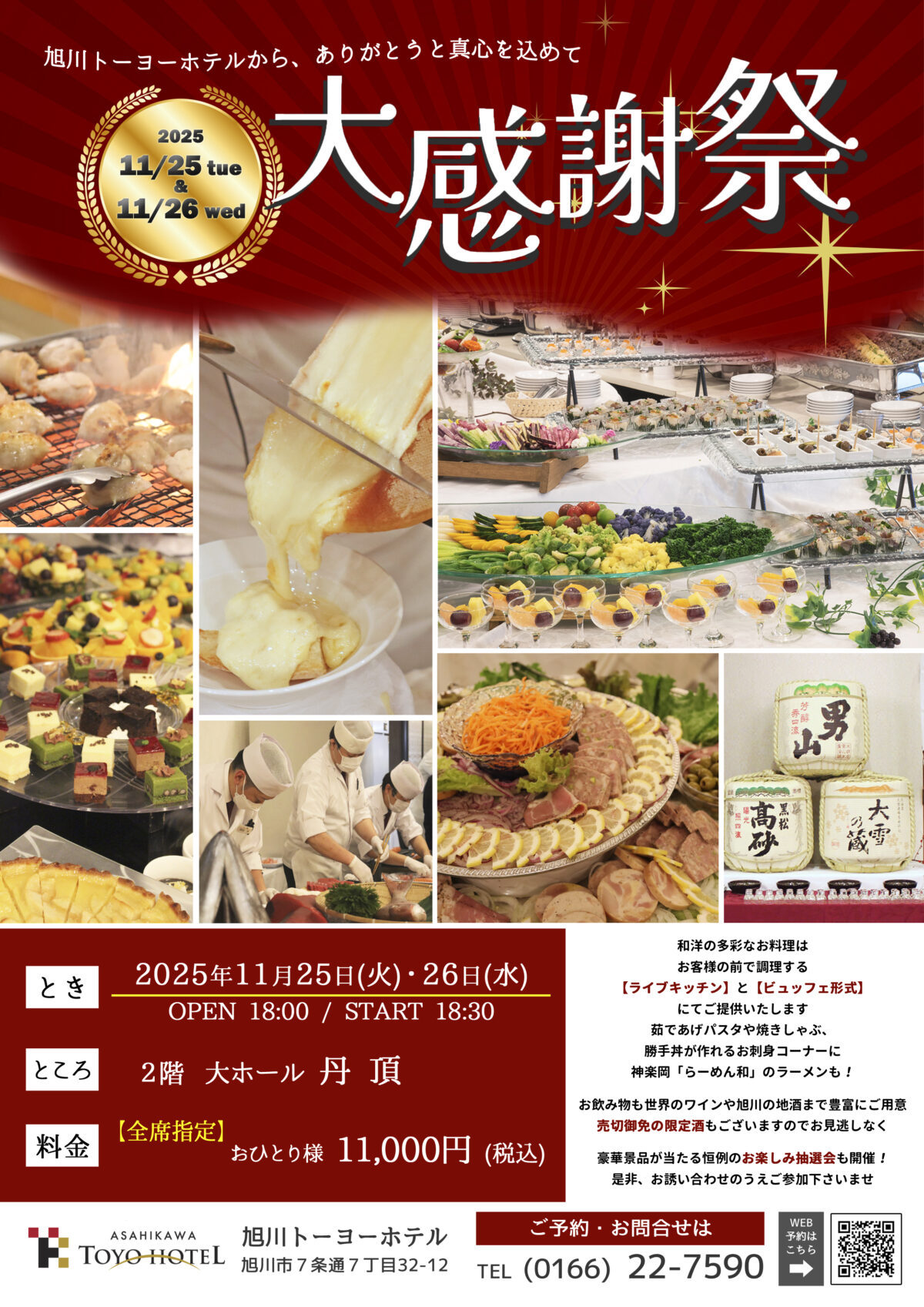 旭川トーヨーホテルでは、今年も11月25日㊋・26日㊌の二日間、『旭川トーヨーホテル大感謝祭2025』を開催いたします。